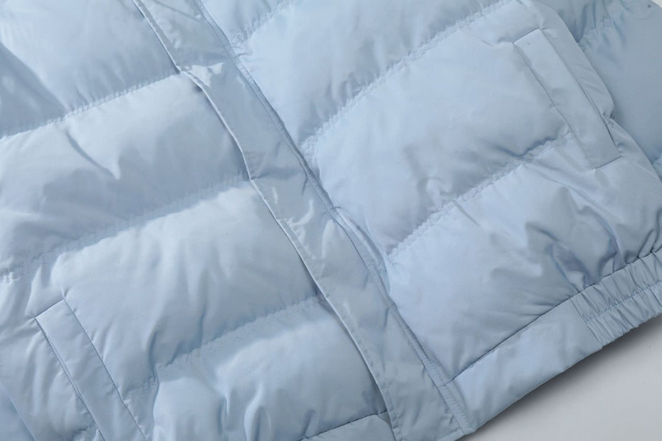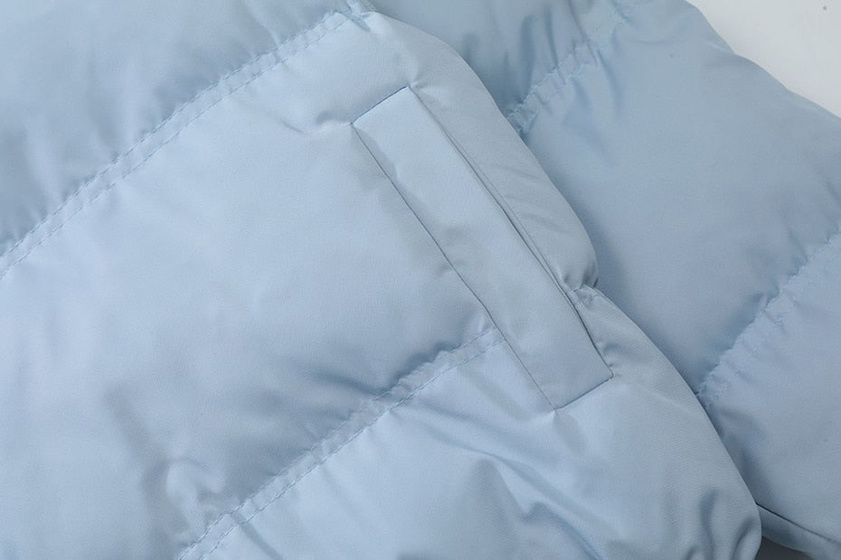 This Heart Puffer jacket features a simple design with a kawaii aesthetic.