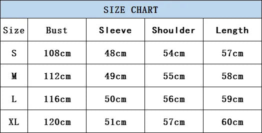 XL - Bust: 120, Length: 60, Sleeve: 51